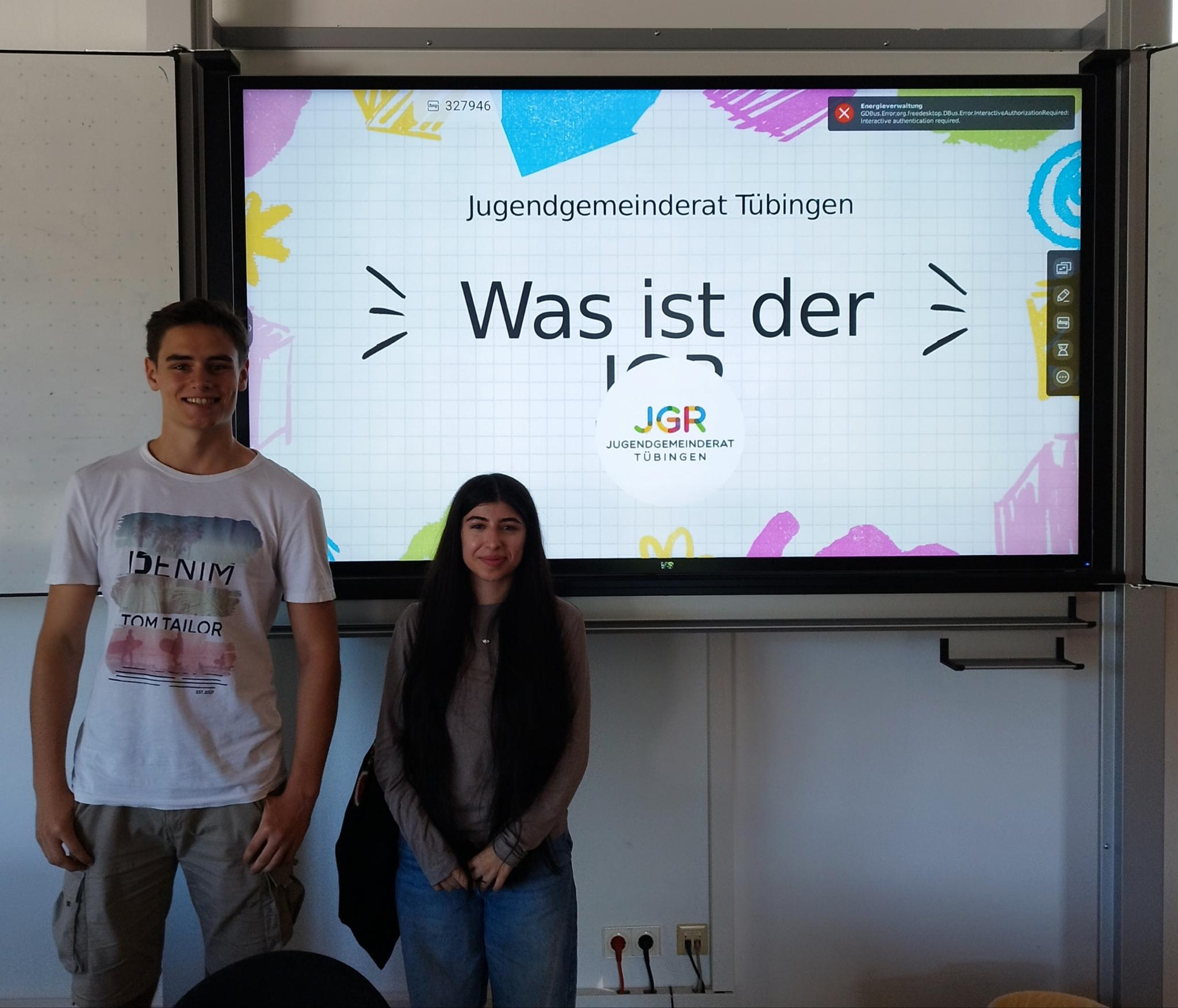 Die Mitglieder des Tübinger Jugendgemeinderats Ceyline und Felix besuchten am 9.7.2024 die Klasse 8a im Gemeinschaftskundeunterricht von Herrn Lacher, um den Schülerinnen und Schülern einen Einblick in die kommunalpolitische Arbeit zu geben. Die JGR-Mitglieder stellten ihre Aufgaben und Projekte vor und erklärten, wie sie die Interessen der Jugendlichen in Tübingen vertreten. Sie veranschaulichten die Mitwirkungsmöglichkeiten und die direkte Einflussnahme auf kommunale Entscheidungen, z.B. bei der Planung des neuen Tübinger Hallenbades. Die Mitglieder des Jugendgemeinderats berichteten auch über aktuelle Themen und Herausforderungen, mit denen sie sich derzeit in den Ausschüssen beschäftigen. Die Schüler der Klasse 8a hatten die Möglichkeit, Fragen zu stellen und eigene Ideen und Anliegen zu äußern.