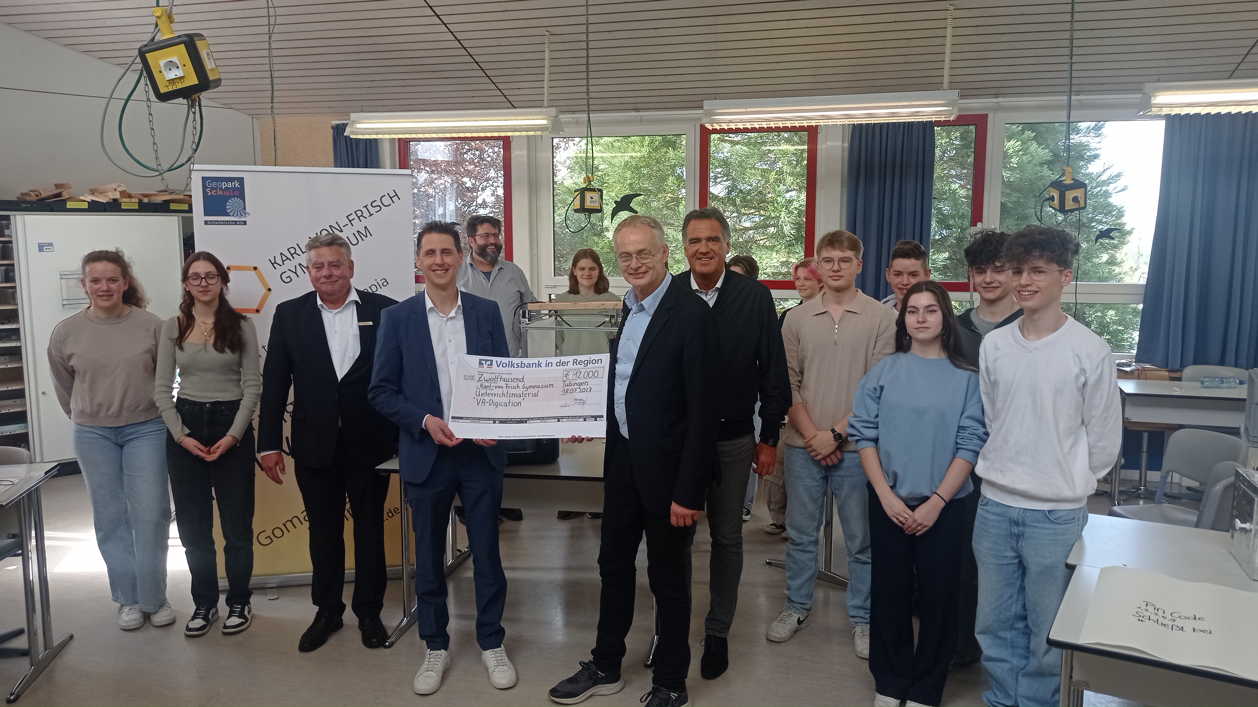 Das KvFG hat von der Volksbank in der Region eG dankenswerterweise 12000 Euro erhalten. Von der Spende soll der MINT-Bereich profitieren. Mit den Geldern hat sich Herr Weitbrecht bereits um den Bildungsplan ergänzende Lernmaterialien gekümmert, z.B. vier 3D-Drucker mit Filament, zwei Windkraftlernkästen und einige Mikrokontroller-Entwicklungsboards, die unseren Schülerinnen und Schülern fortan im NwT-Unterricht und für Jugend-forscht-Projekte zur Verfügung stehen. Im Zuge der Spendenübergabe am 15.4.2024 stellten Schülerinnen und Schüler der Klassenstufe 10 ihre NwT-Projekte vor. Neben funkvernetzten Mikrokontrollern, einem Süßigkeitengreifer mit Tastensteuerung und einem automatisierten Greifmechanismus konnte beispielsweise auch eine Münzerkennungsstation, die mithilfe von Mikrokontrollern die Änderung der Spuleninduktion auswertet, bestaunt und ausprobiert werden.