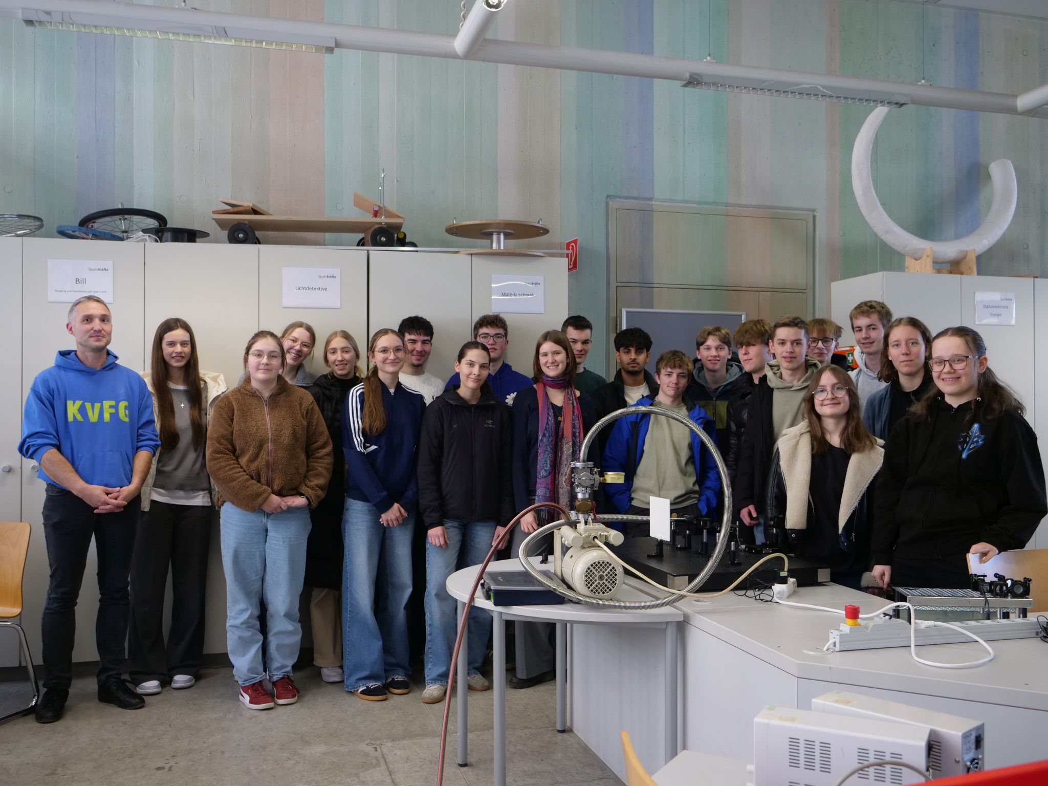 Die Physikkurse der Jahrgangsstufe 2 waren vor einigen Tagen zu Gast im Schülerlabor der Universität Stuttgart. Dort führten die Schülerinnen und Schüler spannende Experimente aus dem Bereich der Optik durch, die auch für das bevorstehende Abitur von besonderer Bedeutung sind.