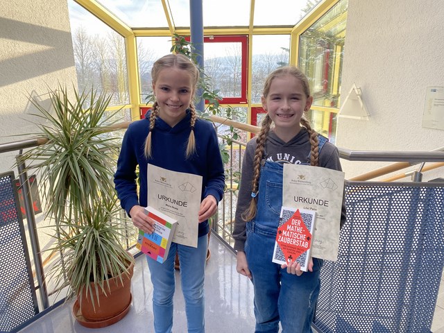 Am Landeswettbewerb Mathematik haben in der ersten Runde 639 Schüler einzeln oder in Gruppen teilgenommen. Die Qualität der eingesendeten Lösungen war dieses Jahr insgesamt erfreulich gut. In der Runde 1 hat Liivi Palm aus der Klasse 6a einen zweiten Preis errungen. Dies qualifiziert sie zur Teilnahme an der zweiten Runde. Als Anerkennung dieser tollen Leistung erhielt sie eine Urkunde und einen Buchpreis. Nora Hicke aus der Klasse 6a hat einen dritten Preis erreicht und bekam ebenfalls eine Urkunde und einen Buchpreis. Die Fachschaft Mathematik gratuliert den Preisträgerinnen und wünscht weiterhin viel Erfolg!
