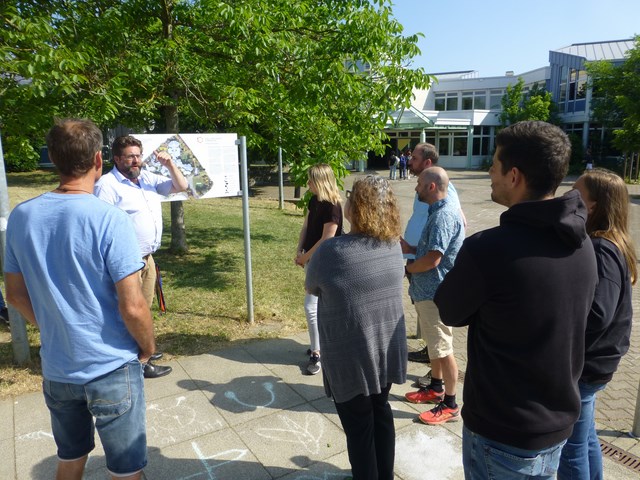 Seit dem Jahr 2021 ist das Karl-von-Frisch-Gymnasium als Geoparkschule ausgezeichnet aufgrund des vielfältigen und ausdauernden Engagements in den Bereichen Geologie, Natur- und Umweltschutz, Landschaftskunde und Nachhaltigkeit. Dies erfolgt am KvFG in Form des curricularen Unterrichts, aber auch mittels Exkursionen, in Projekten, AGs oder der Zusammenarbeit mit außerschulischen Partnern. Am 15.6.2023 fand nun das Netzwerktreffen der Geoparkschulen aus dem Gebiet des Geoparks Schwäbische Alb am KvFG statt. Herr Friederichs, Herr Sickinger und Herr Weitbrecht kümmerten sich um ein attraktives Programm, das auch einen Rundgang über Schulgelände unserer „Schule im Grünen“ beinhaltete. Sodann wurde das BNE-Konzept des Geoparks zu Nachhaltigkeitsdilemmata zum Thema Wasser im Karstgebiet diskutiert. Am Nachmittag veranstalteten wir eine selbst geführte Exkursion zu den Rutschungsereignissen in Mössingen am Hirschkopf (1983) sowie in Mössingen-Talheim (2013), die dieses Jahr 40 bzw. 10 Jahre lang her sind.