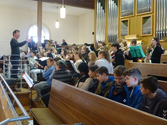 Der sehr musikalische Gottesdienst in der ev. Kirche Gomaringen anlässlich des Volkstrauertags am 19.11.2023 wurde von der KvFG-Bigband umrahmt. Drei Stücke durfte die 30-köpfige Besetzung beitragen, unter anderem das „Abendlied“ von Joseph Rheinberger, bei dem die Bigband gemeinsam mit dem Gomaringer Chor „Collegium vocale“ musizierte. Ein herzlicher Dank an die Bigband unter Leitung von Herrn Wolf für diese schöne musikalische Gestaltung des Gottesdienstes!