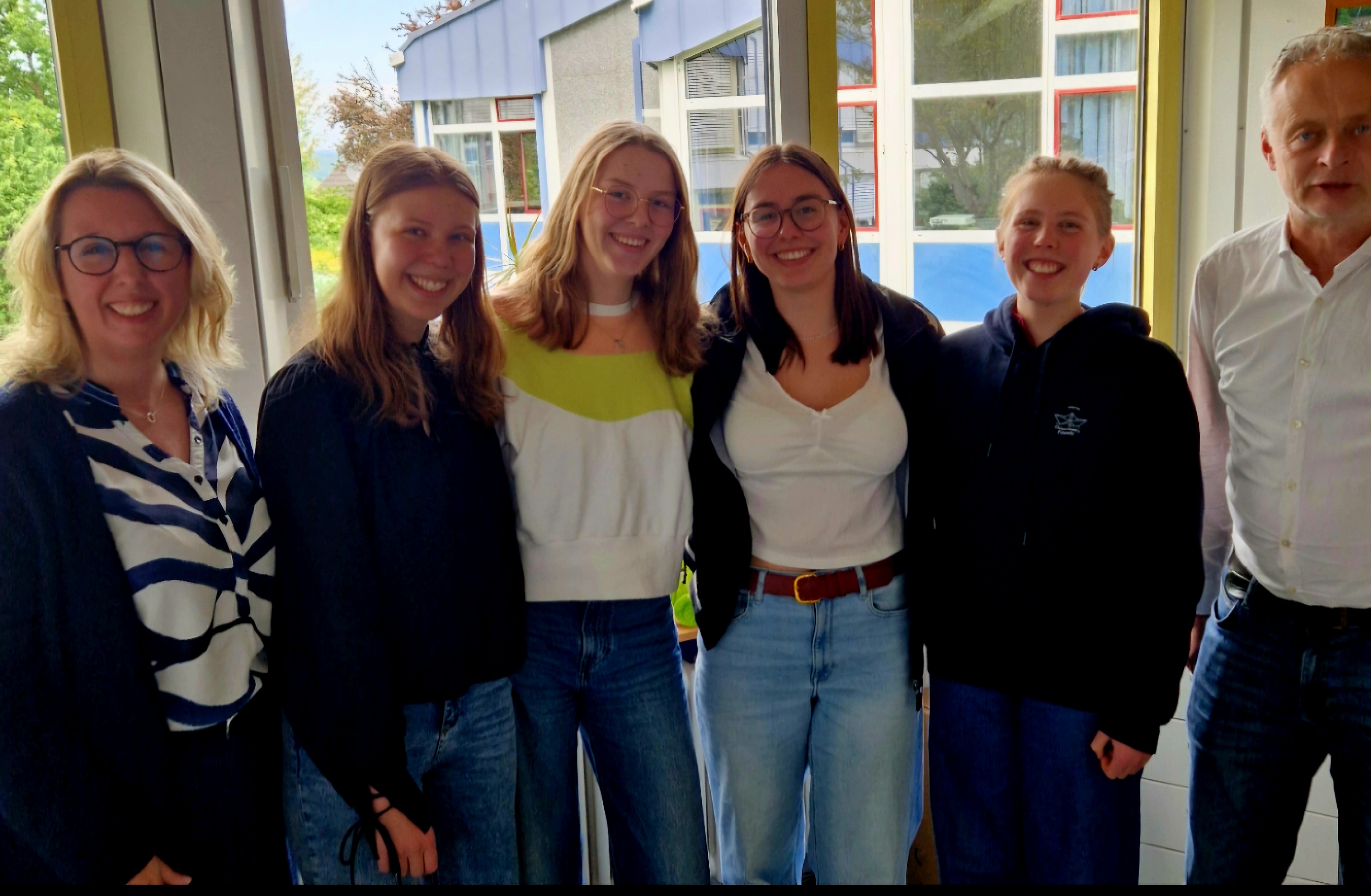 Die Begeisterung bei unseren Jg. 1-Schülerinnen war groß, als sie durch ihre Gemeinschaftskundelehrerin Kerstin Rapp und Schulleiter Karsten Rechentin von ihren Platzierungen beim 67. Schülerwettbewerb des Landtags in Baden-Württemberg erfuhren. Ihre Arbeiten zeichneten sich durch inhaltlich unterschiedliche und sehr interessante Schwerpunkte aus. Emily Divljak befasste sich in einem Podcast mit den Herausforderungen politischer Meinungsbildung im Zusammenhang mit den sozialen Medien. Alicia Froemels Hausarbeitsthema lautete: „Leben in einer unsicheren Welt – (Wie) kann man künftigen Sicherheitsbedrohungen begegnen?“ Im selben Format zum Thema „KI-Fakes im politischen Alltag“, ging Johanna Wader an den Start und Merle Scholz widmete sich in ihrer Facharbeit den US-Wahlen und untersuchte, welche Bevölkerungsgruppen D. Trump unterstützten. Die Teilnehmerinnen bekamen einen Gutschein in Höhe von 35 € und eine von Landtagspräsidentin Muhterem Aras unterzeichnete Urkunde überreicht. Wir sind sehr stolz auf diese Vierfachauszeichnung und die damit verbundene Honorierung der Beiträge unserer Schülerinnen, in denen ganz deutlich eine politische Position bezogen wurde. Herzlichen Glückwunsch!