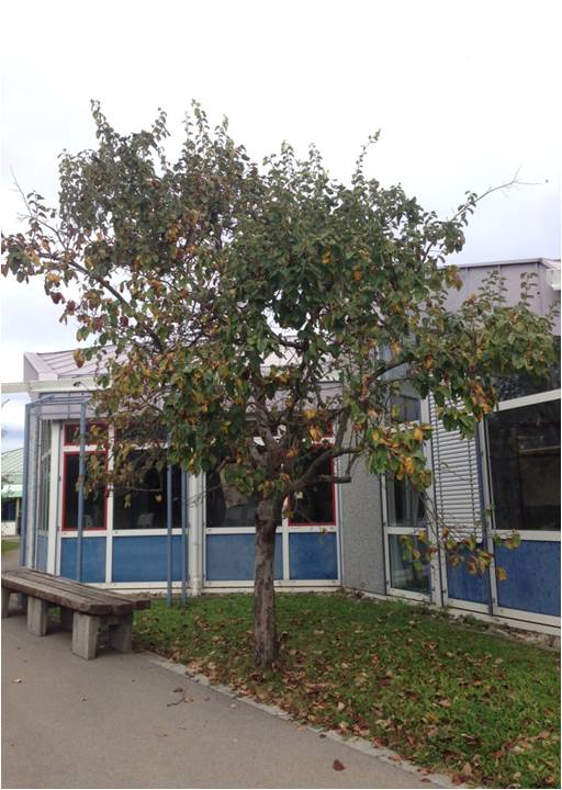 Quittenbäume sind in unserer Kulturlandschaft relativ selten. Zum einen sind Quitten wärmeliebender als Äpfel und Birnen und werden deshalb – wie auch bei uns an der Schule – an geschützten Standorten angepflanzt. Zum anderen ist die Frucht nur bedingt roh zu genießen. Dabei sind Quitten nicht nur für die Küche eine echte Besonderheit! Die großen Blüten und die riesigen birnenförmigen Früchte sind ein echter Blickfang im Garten.
