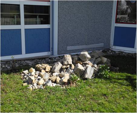 Besonders Steinhaufen mit unterschiedlichen Steingrößen bilden abwechslungsreiche Strukturen für viele unterschiedliche Lebewesen. Vor allem wärmeliebende Tierarten halten sich auf den Steinen auf und verstecken sich in den Ritzen bei Gefahr.