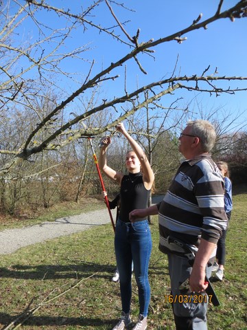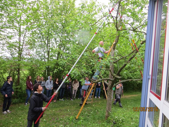 Der Schnitt der Obstbäume findet seit Jahren im Rahmen des Biologie-Unterrichts mit Unterstützung u.a. der örtlichen Obst- und Gartenbauvereine und deren Experten bzw. Fachwarte statt. Bei bestimmten Klassen der Klassenstufe 10 gehört daher Baumschnitt zum Unterricht.