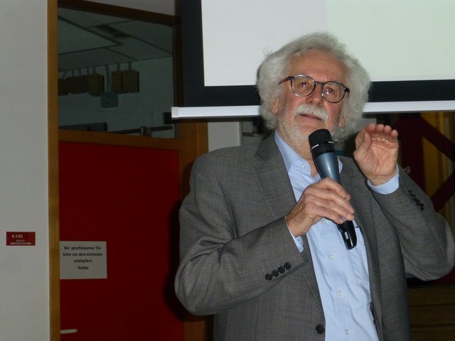 Zum Jubiläum des 25. Karl-von-Frisch-Tags war am 20.11.2019 mit Prof. Jürgen Tautz, bekannter Bienenforscher und Autor, ein besonderer Referent am KvFG. Zum Thema „Karl von Frisch damals und heute - Wie Bienen die Welt sehen und kommunizieren“ nahm er die zahlreichen Zuhörenden in der vollen Aula mit in die Wahrnehmungswelt der Bienen.