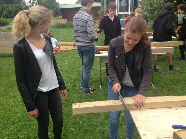 Die Nisthilfe für Wildbienen am Karl-von-Frisch-Gymnasium ist in zwei Aktionstagen (E-Days) 2015 und 2016 entstanden. Die folgenden Bilder vermitteln Eindrücke davon.