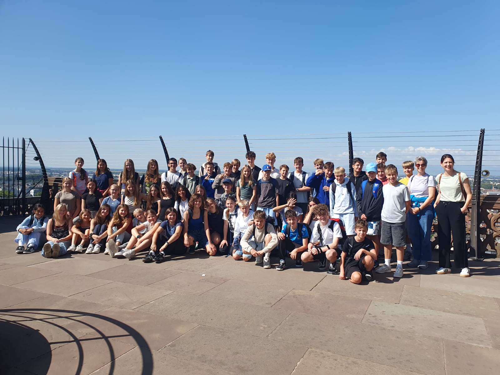 Am Donnerstag, dem 10. Juli, haben wir, die Französischklassen der 7. Stufe, eine Exkursion nach Straßburg unternommen. Dort besichtigten wir das Münster und genossen auf der Aussichtsplattform den Blick über die Stadt.Ein weiteres Highlight war die astronomische Uhr, die sich im Inneren des Münsters befindet. Nach einer kurzen Erklärung der Funktionsweise der Uhr konnten wir sie schlagen sehen und die Bewegungen der Figuren beobachten.Anschließend hatten wir freie Zeit und konnten uns selbstständig in der Stadt bewegen. Dabei probierten wir echten französischen Flammkuchen, Crêpes oder Macarons und konnten ein wenig shoppen gehen. Zur Mittagszeit trafen wir uns wieder und bekamen ein kleines Heft mit Fragen über die Stadt, die wir in Kleingruppen beantworteten. Später fuhren wir mit dem Minizug durch das Stadtviertel La Petite France, das sich durch seine vielen Fachwerkgebäude auszeichnet. Während der Fahrt besichtigten wir Sehenswürdigkeiten, zu denen wir über einen Audioguide interessante Informationen erhielten.Es war ein sehr schöner und erlebnisreicher Tag, an dem wir viel über Straßburg erfahren haben. Wir freuen uns darauf, Frankreich im nächsten Schuljahr noch besser kennenzulernen.