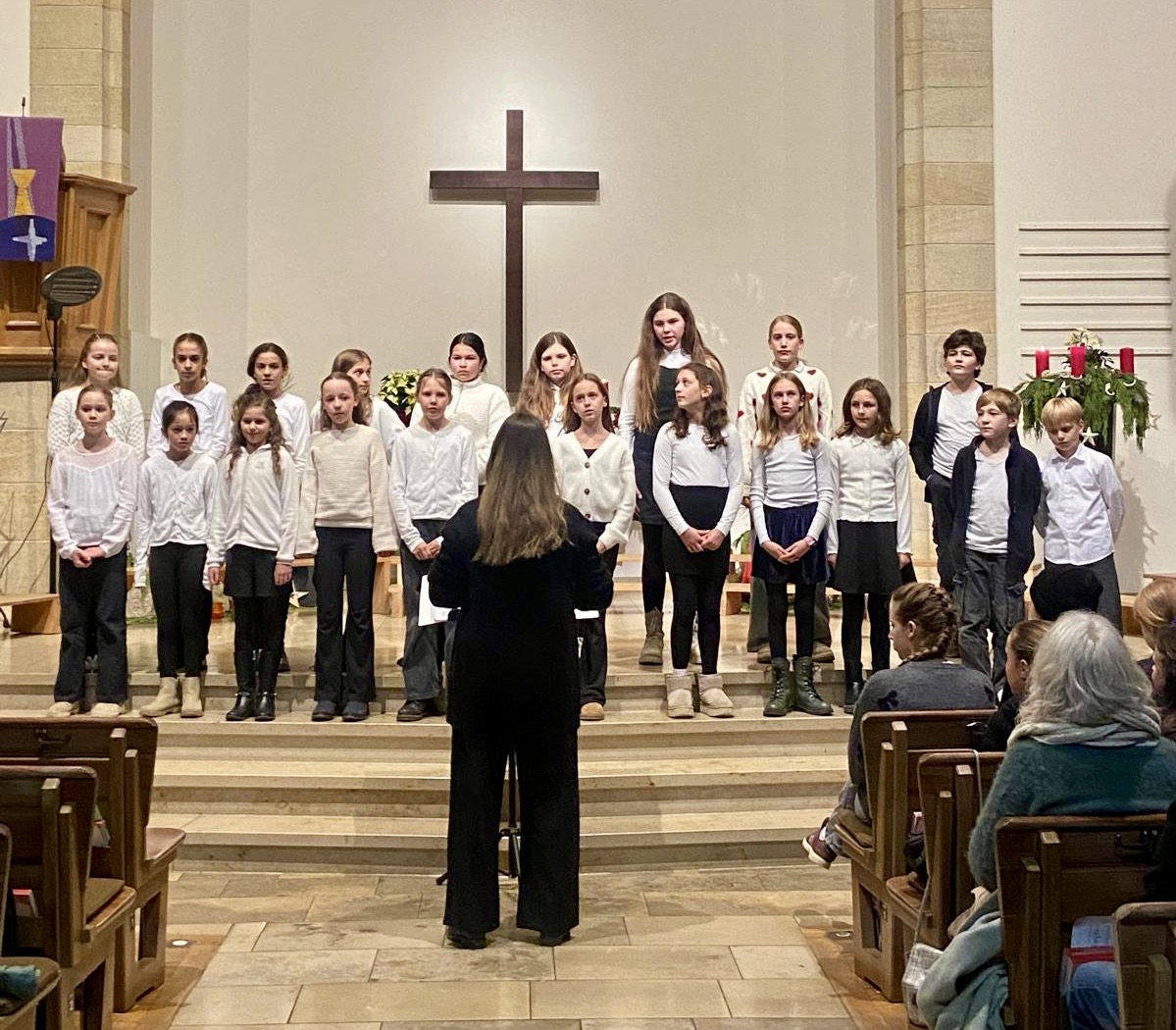Vergangenen Freitagabend (12.12.25), kurz vor dem dritten Adventswochenende, verwandelte sich die Evangelische Kirche in Gomaringen in einen festlichen Konzertsaal. Die Bigbands und Chöre des KvFG verbreiteten mit ihren Auftritten stimmungsvolle Weihnachtsvorfreude und luden die Gäste zu einem musikalischen Adventserlebnis ein. Die Bigband der Klassenstufen 9 bis 12 unter der Leitung von Benjamin Wolf eröffnete das Konzert mit feierlichen Klängen, die sofort Adventsstimmung aufbrachten. Nach der Begrüßung durch Herrn Rechentin und einer kurzen Ansprache zur Einstimmung auf den Abend übernahm der Unterstufenchor unter der Leitung von Simone Federle-Digel. Nach einem mitreißenden Gospel sorgten auch ruhigere, nachdenkliche Stücke für besinnliche Momente. Mit der Juniorbigband unter der Leitung von Bettina Braun ging es weiter, ihre Weihnachtsrhythmen brachten nochmal richtig Schwung in die Kirche. In seiner Ansprache hob Herr Rechentin später die Bedeutung der Schulgemeinschaft hervor, die an diesem Abend besonders durch den Projektchor sichtbar wurde, der aus Schülerinnen und Schülern, Eltern und Lehrkräften eigens für diesen Auftritt zusammengefunden hatte. Der Chor der Klassen 7 bis 12 unter der Leitung von Benjamin Wolf rundete das Programm ab: Ein abwechslungsreicher Mix aus ruhigen, stimmungsvolle Liedern und einem barocken Kanon mit virtuosen Melodien begeisterte das Publikum. Immer wieder waren die Gäste eingeladen, mitzusingen, was sie gern taten. Den stimmungsvollen, festlichen Abschluss bildete das gemeinsame „O du fröhliche“ aller Ensembles und Gäste.