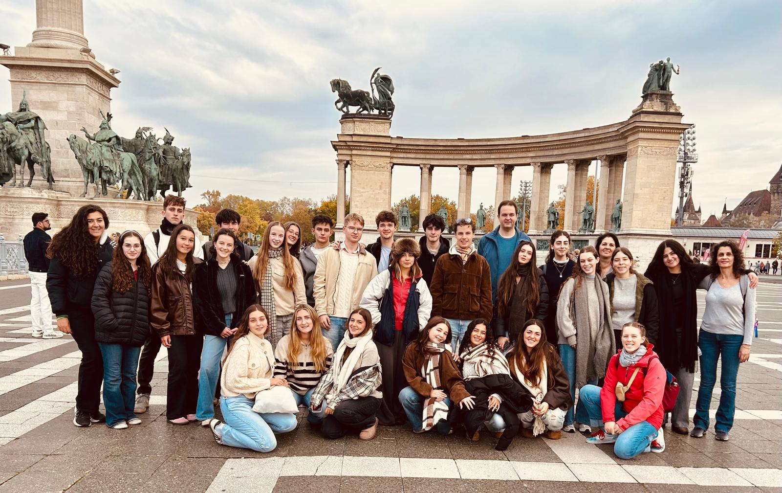 Nach langer Zeit ohne Austausch konnte vom 21.–26.10.2025 endlich wieder eine Begegnung zwischen deutschen und israelischen SchülerInnen stattfinden. Aufgrund der schwierigen Lage in Israel wurde Budapest als Drittort ausgewählt. Dort trafen wir die israelischen SchülerInnen des Diplomatiekurses ihrer Schule. Sechs Tage lang erkundeten wir gemeinsam die Stadt, diskutierten, stellten Fragen und lernten uns sowie die jeweils andere Kultur besser kennen. Obwohl ein Treffen in Israel nicht möglich war, bot Budapest vielfältige Einblicke in das Judentum und erwies sich als geeigneter Ort für diese Begegnung. Wir tauschten uns aus, stimmten zu oder widersprachen und genossen unsere Zeit in der Gemeinschaft, sowohl bei geführten Touren und Aktivitäten als auch in der Freizeit. Ein besonderes Erlebnis waren die Schabbatfeier am Freitag und das schwäbische Abendessen am Samstag. Solch bereichernde Begegnungen wünschen wir auch den folgenden Stufen – hoffentlich bald wieder in Israel! - Clara Tahami und Marie Kliefert