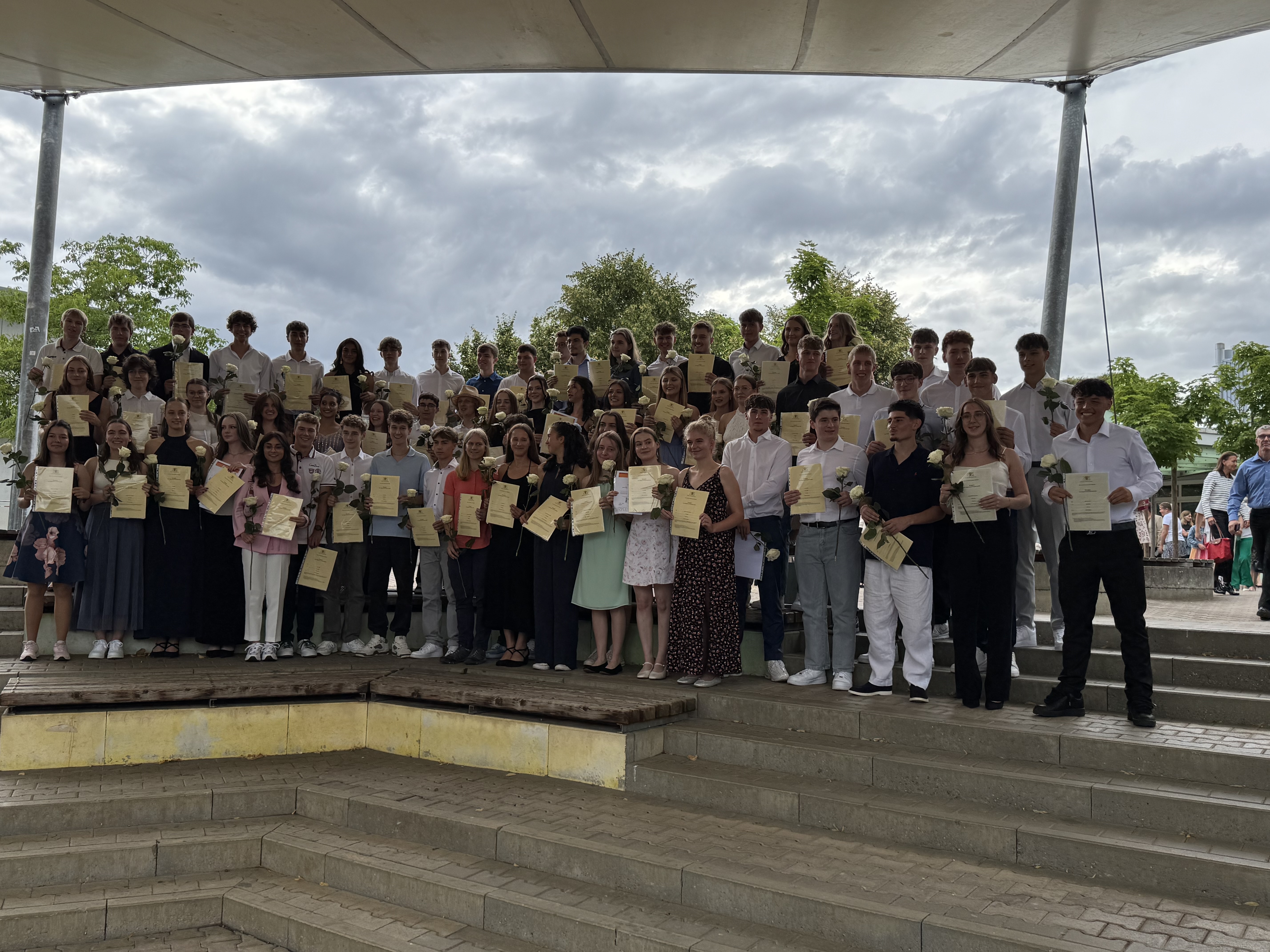 Nach dem letzten mündlichen Prüfungstag am gestrigen Montag, dem 7. Juli 2025, konnten die Abiturientinnen und Abiturienten des diesjährigen Jahrgangs am Abend feierlich ihre Abiturzeugnisse entgegennehmen. Damit geht eine intensive und erfolgreich abgeschlossene Schulzeit zu Ende. Wie jedes Jahr wurden im Rahmen der feierlichen Zeugnisverleihung auch besondere Leistungen gewürdigt: Neben schulischen Fachpreisen wurden Auszeichnungen für besonderes Engagement verliehen. Zudem konnten sich die drei besten Absolventinnen und Absolventen über Preise freuen, die durch lokale Unternehmen ermöglicht wurden. Unser besonderer Dank gilt dabei den Firmen Elekto-Zürn und Bowa für ihre großzügige Unterstützung. Wir gratulieren dem Abiturjahrgang 2025 ganz herzlich und wünschen allen Absolventinnen und Absolventen viel Glück und Erfolg auf ihrem weiteren Lebensweg!