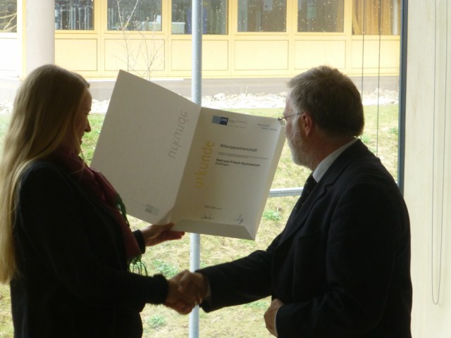 Man kennt sich. Kein Wunder, schließlich sind das Karl-von-Frisch-Gymnasium und die BOWA-electronic GmbH & Co. KG direkte Nachbarn. Am 14.6.2013 unterzeichneten beide Seiten eine Kooperationsvereinbarung, die Schule und Betrieb jetzt zu Partnern machen, welche für Schülerinnen und Schüler ein gemeinsames Programm bereitstellen.